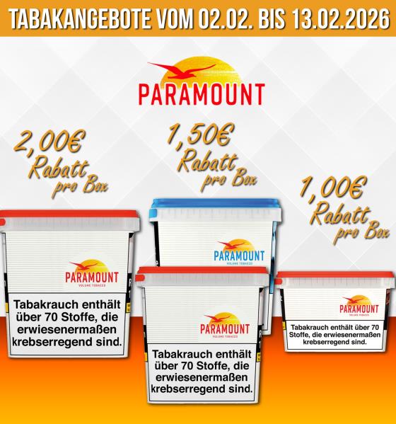 Beim Kauf von 1 Eimer Paramount Red Volume Tobacco Box 315g erhalten Sie 2,00 Euro Rabatt.